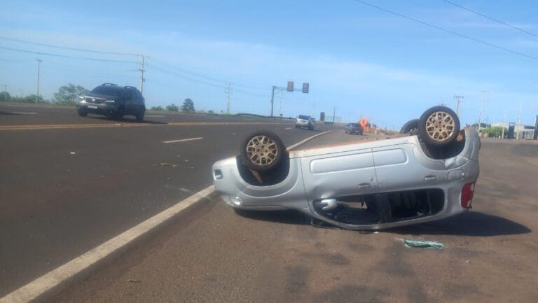 Um Fiat Strada conduzido por um motorista de 23 anos, colidiu na traseira de um Fiat Uno, que era dirigido por um homem de 38 anos. Com o impacto, o Fiat Uno capotou.