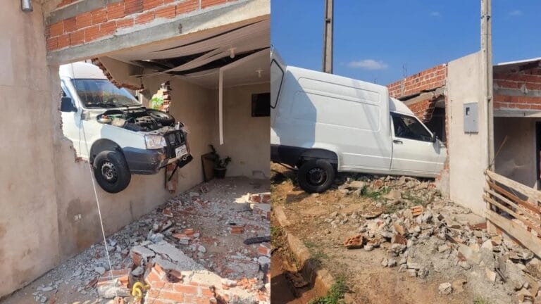 De acordo com relatos dos moradores, o motorista da Fiat Fiorino teria esquecido de puxar o freio de mão antes de sair do utilitário. O veículo, que não estava com ocupantes, acabou quebrando parte do muro e invadindo uma casa.