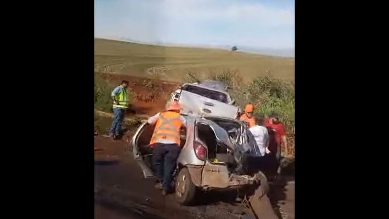 Com o impacto, a caminhonete e o carro de passeio ficaram com a frente destruída. As duas pessoas ocupantes da caminhonete morreram na hora.