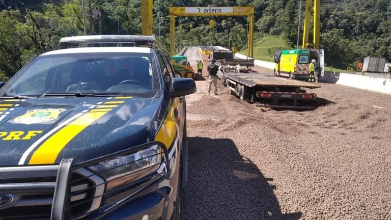 Equipes da Arteris Litoral Sul atuaram no atendimento e na sinalização do local. O dispositivo ficou bloqueado durante o trabalho das equipes. Não houve interdição de faixas ou lentidão na via principal A Polícia Rodoviária Federal (PRF) também foi acionada.