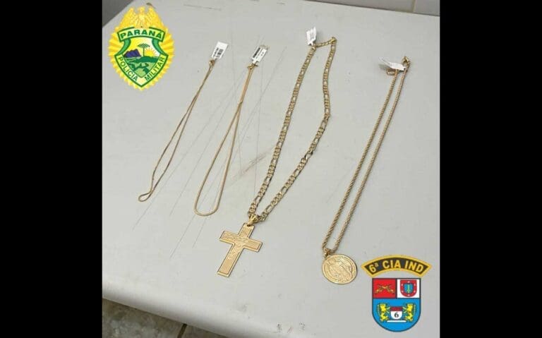 Foram recuperadas quatro correntes, uma delas com crucifixo e outra com medalha.