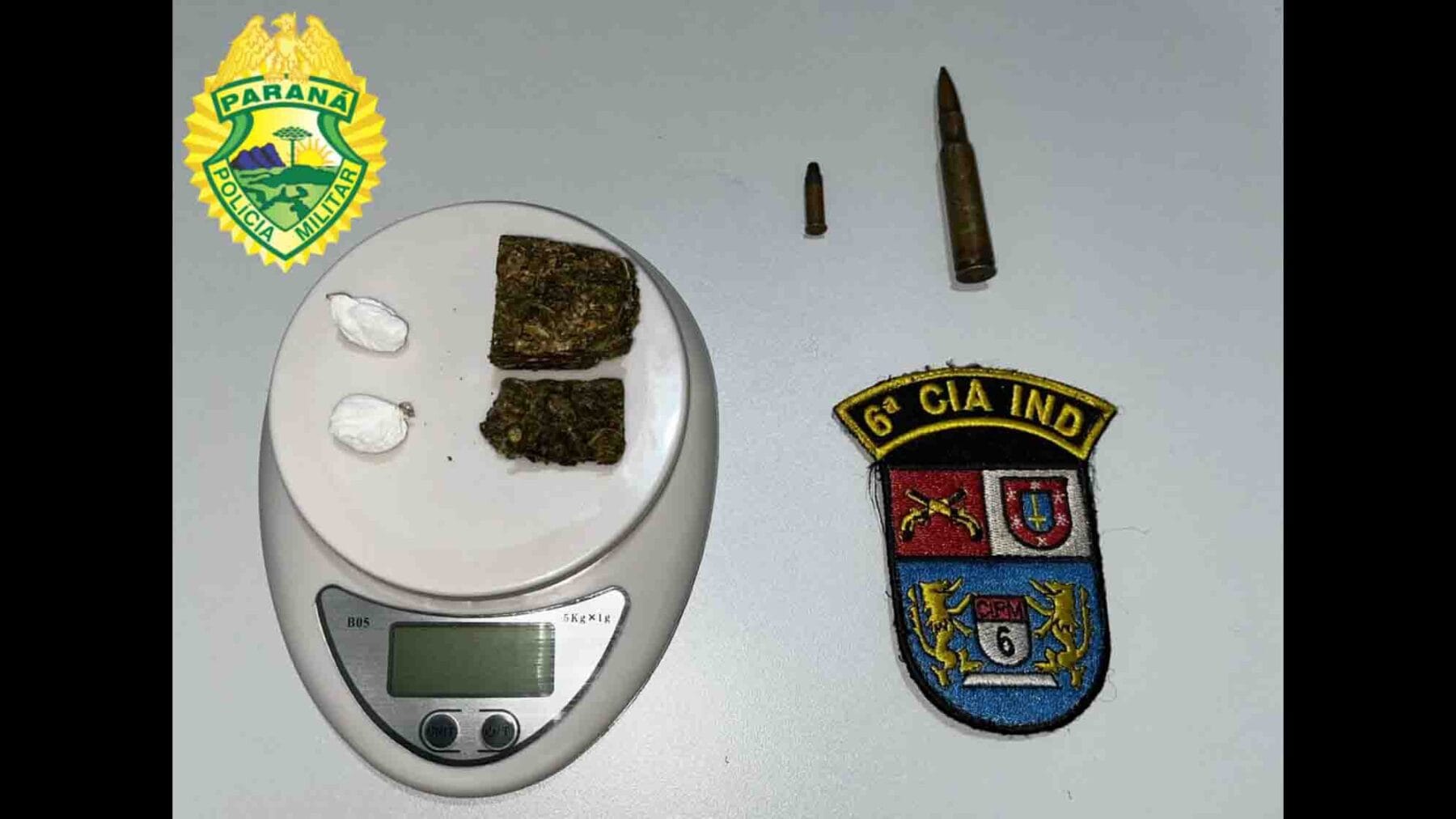 A Polícia Militar (PM) prendeu um homem de 25 anos suspeito de tráfico de drogas e posse irregular de munições em Ivaiporã.