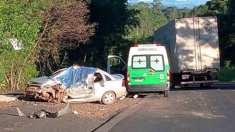 A colisão ocorreu na região de Três Bicos, sentido Reserva, e envolveu um Corsa Sedan e um caminhão Mercedes-Benz Atego. O motorista do Corsa ficou preso às ferragens e morreu no local. O condutor do caminhão não sofreu ferimentos.