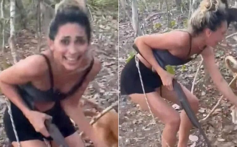 No vídeo, ela aparece portando uma espingarda, em uma área de vegetação, com ela outras pessoas estão acompanhando e mais 4 cachorros, durante a filmagem, a mulher dispara em direção às árvores onde a onça-parda, a fazendo despencar das árvores, ainda viva, no momento que cai no chão, o animal é atacado por 4 cães, sendo morto, assim ela comemorando a morte do animal.