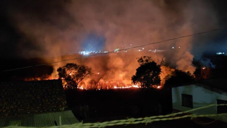 A equipe foi acionada pelo Copom após denúncia de fogo próximo ao trevo principal do município. Agentes da Brigada Municipal foram ao local e iniciaram o combate às chamas.