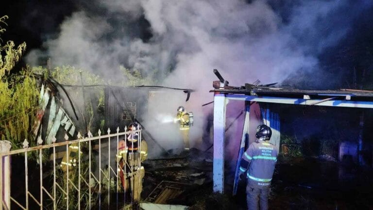 Quando os bombeiros chegaram ao local, a casa já estava completamente tomada pelas chamas. A equipe realizou o combate direto às chamas e, em seguida, fez o rescaldo no local para eliminar focos restantes e garantir a segurança da área.