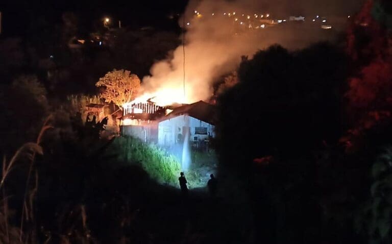 Incêndio destrói duas casas no Jardim Pinguim, em Faxinal