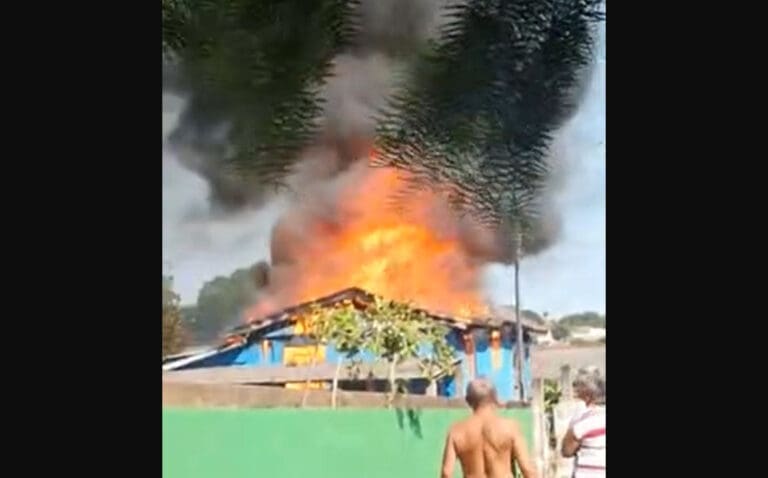 Incêndio destrói residência em Marilândia do Sul; vídeo