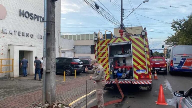 A corporação foi acionada para atender a ocorrência por volta das 06h02. O foco do incêndio aconteceu no quinto andar do hospital. “Um ar condicionado de uma das salas do centro cirúrgico entrou em curto, pegou fogo e gerou uma fumaça bastante preta”, informa o tenente Marks.