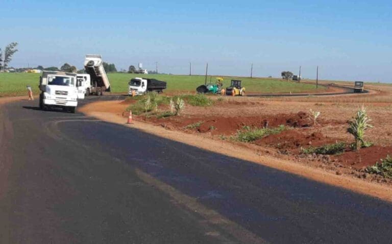 Além disso foi feita a terraplanagem e cascalhamento de cerca de 1,5 metro de cada lado da estrada e também foram construídas caixas de contenção para armazenar a água das chuvas e evitar que elas provoquem erosão nas lavouras.