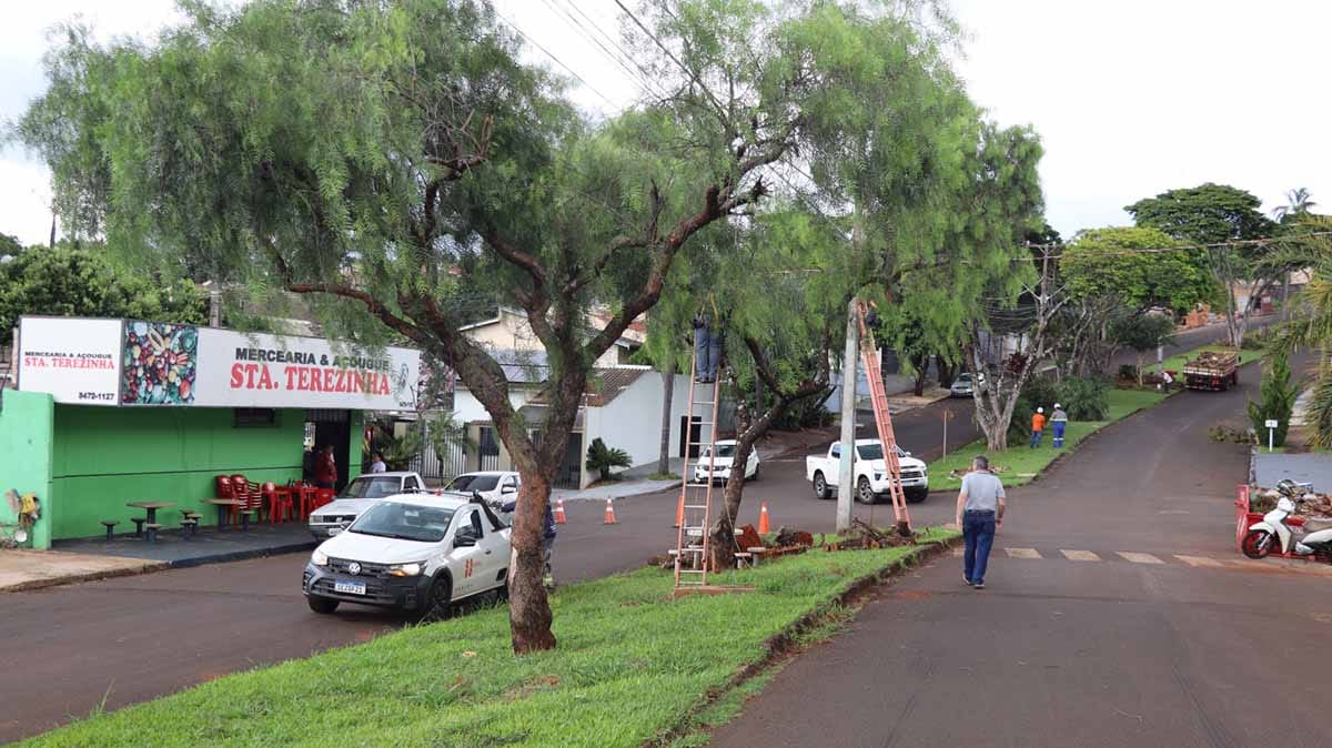 Uma equipe também atuou na Rua Emílio Ganzert, no Jardim Alto da Glória, onde foram retirados cabos telefônicos que, segundo a organização, apresentavam riscos, inclusive de eletrificação.