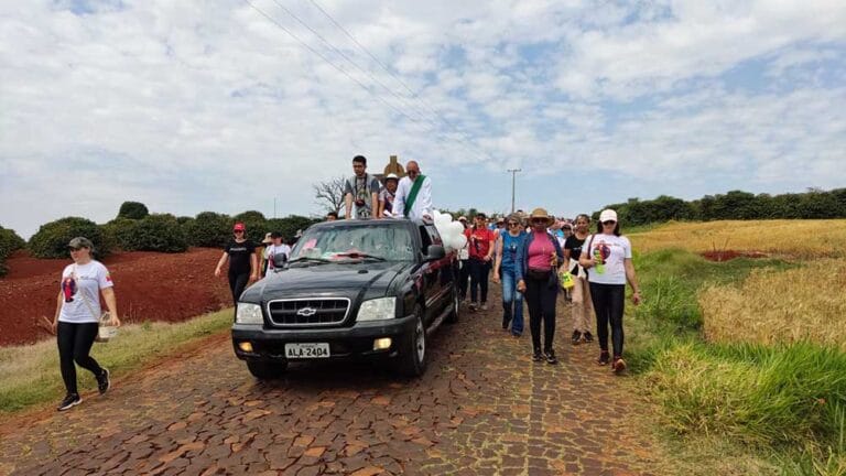 O percurso começa na Diaconia Nossa Senhora do Perpétuo Socorro, no Jardim Nova Porã, e se estende por estradas rurais e pontos religiosos até a Paróquia Nossa Senhora de Lourdes, no distrito de Jacutinga.