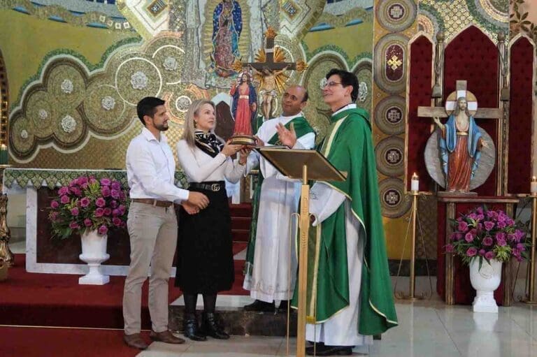 “Foi emocionante participar da missa celebrada pelo padre Reginaldo Manzotti, consagrar as imagens de Jesus das Santas Chagas e divulgar o nome de Ivaiporã em rede nacional por meio da TV Evangelizar. A princípio as imagens serão colocadas nas Paróquias Bom Jesus e Santíssima Mãe de Deus. No dia 6 de novembro, quando será realizado o Caminho de Jesus das Santas Chagas, a partir das 06h00, as imagens irão percorrer as diaconias do percurso”, explicou Gertrudes Bernardy.