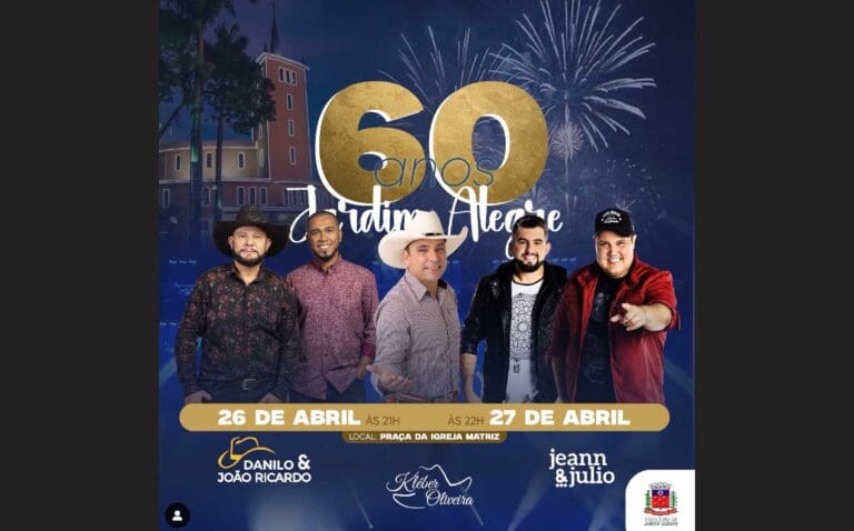 Em seguida, a dupla Danilo e João Ricardo toma conta do palco, trazendo toda a empolgação e o melhor da música sertaneja para os jardim-alegrenses. O show da dupla está previsto para se iniciar por volta das 23 horas.