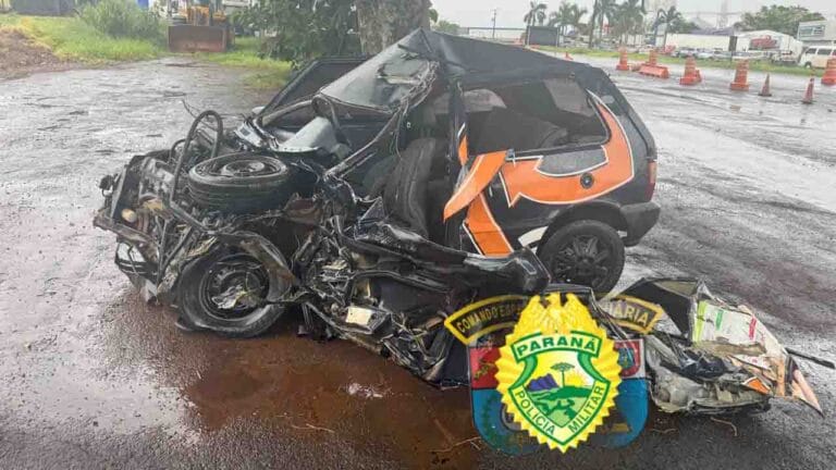 De acordo com informações da Polícia Rodoviária Estadual (PRE), o Fiat Uno, com placas de Londrina, seguia no sentido Arapongas a Maringá quando o motorista, perdeu o controle do veículo. O carro invadiu a pista contrária e colidiu lateralmente com um caminhão Volkswagen Delivery, com placas de Aguaí (SP).