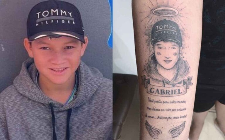 Gabriel Roberto dos Santos Alves, de 12 anos, que morreu em dezembro, após ser atingido por escombros de um muro em São João do Ivaí, foi homenageado pelo irmão Gustavo, através de uma tatuagem. As informações são do Canal HP.