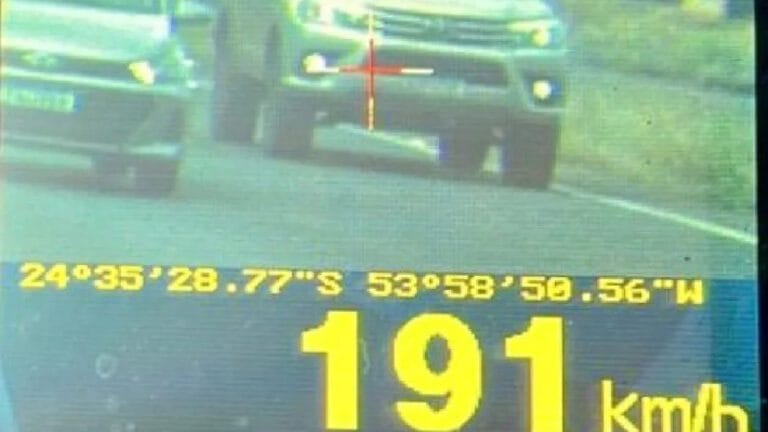 Um motorista de 20 anos foi flagrado pela Polícia Rodoviária Federal (PRF) dirigindo a 191 km/h na BR-163, em Quatro Pontes, no oeste do Paraná. O caso ocorreu em uma região de fronteira, onde a PRF intensifica a fiscalização devido ao tráfego de veículos utilizados em atividades ilícitas.