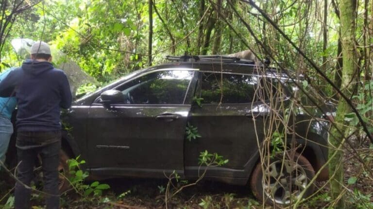 Após o acionamento da Polícia Militar (PM), as vítimas informaram que um dos veículos teria rastreador, sendo repassada aos policiais a localização. O veículo estava na área rural de Apucarana, na região de Caixa de São Pedro. Durante a busca dos veículos, foi localizado em uma estrada rural, um veículo Peugeot de cor preta, com placas de Mandaguari, que possivelmente teria sido utilizado pelos ladrões. O carro estava atolado e com a chave na ignição.
