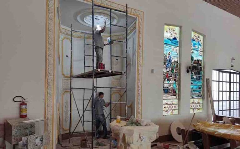 Na sexta-feira (23), funcionários da Pietá de Londrina, realizavam os trabalhos de acabamento na capela dentro da igreja, realizando a pintura, colocação do lustre e da coluna, onde a relíquia ficará exposta.