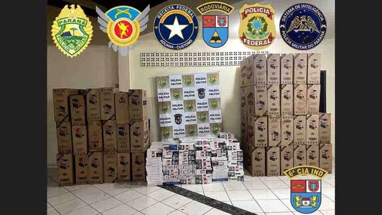 Em uma ação conjunta entre diversas forças policiais e de inteligência, na noite de domingo (30), uma grande quantidade de cigarros contrabandeados foi apreendida em Faxinal, no Paraná.