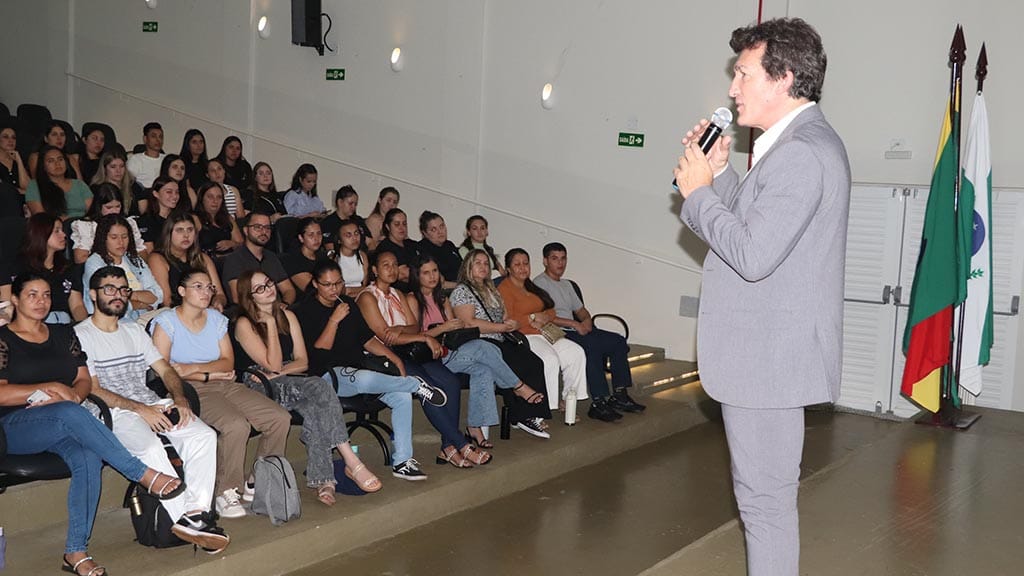 Na quinta-feira, 26 de fevereiro, a coordenação do curso de Pedagogia da Fatec Ivaiporã promoveu a aula magna destinada aos acadêmicos do 1º ao 5º período com a participação do psicólogo e gestor de Gente & Gestão da Cresol, Marco Pimenta. A proposta foi discutir liderança e postura profissional no mercado de trabalho.