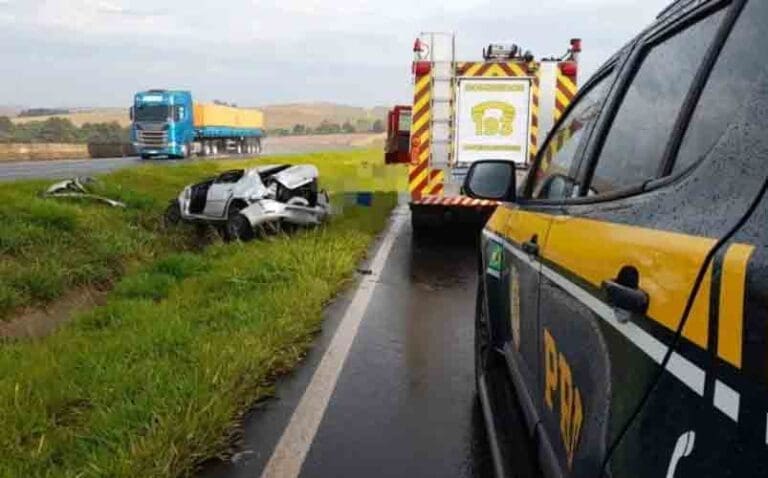 De acordo com as informações das autoridades, um veículo ocupado por uma família capotou na altura do km 470, próximo a um posto de combustíveis, no sentido norte da Rodovia do Café. O condutor do Renault Logan, de 35 anos, perdeu o controle da direção e isso fez o carro, que tem placas de Irati, parar no canteiro central da via.