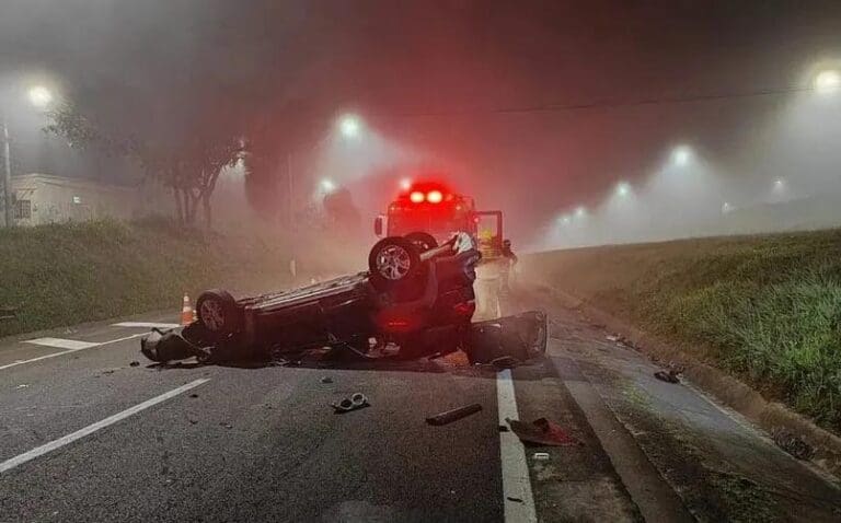 A equipe de reportagem da Banda B conversou com uma testemunha do acidente, o motoboy Bruno Alves. O motociclista estava logo atrás do carro quando ele capotou. “Devido a essa neblina muito forte, o rapaz acabou se perdendo para não bater em outro carro. Graças a Deus foi só bem material, não se machucou. Ele disse que para não bater em outro carro acabou tirando e se perdendo”, afirmou.