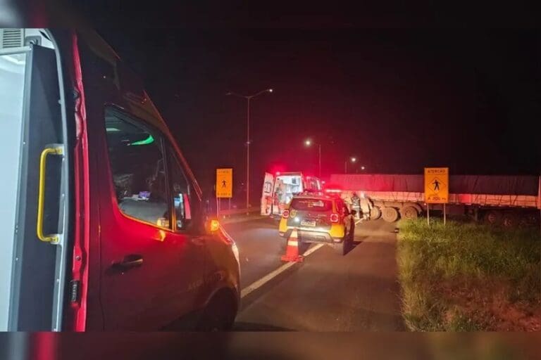 Uma colisão entre uma motocicleta e uma carreta mobiliza socorristas do Serviço de Atendimento Móvel de Urgência (Samu) e do Corpo de Bombeiros na noite desta terça-feira (30) na BR-369, trecho entre Apucarana e Arapongas. Um motociclista de 72 anos morreu e uma mulher ficou ferida com gravidade na ocorrência.