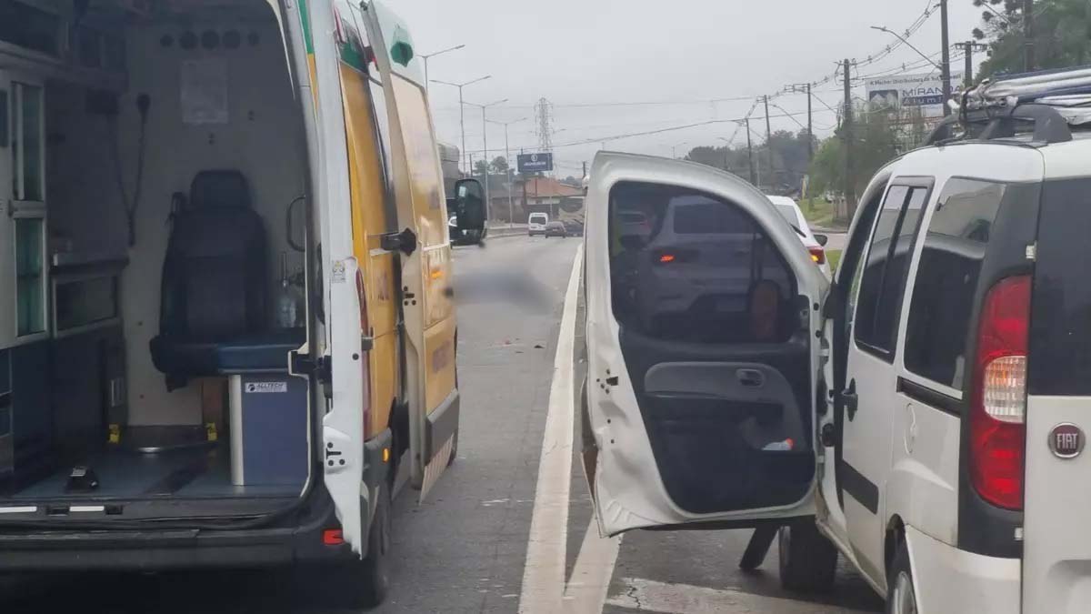 Um motociclista morreu atropelado por uma carreta depois que se desequilibrou após o motorista de um Fiat Doblô abrir a porta para pegar um objeto que caiu do veículo. O rapaz bateu na porta do carro, caiu na rodovia e foi atropelado. O caso foi registrado na manhã desta terça-feira (16) na BR-376, em São José dos Pinhais (PR).