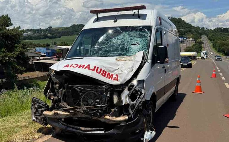 Um motociclista sofreu ferimentos graves após colidir com uma ambulância no início da tarde desta sexta-feira (3), em Laranjeiras do Sul no Centro Oeste do Paraná. O acidente aconteceu no km 451,3 da BR-277, no trevo de entroncamento com a BR-158.