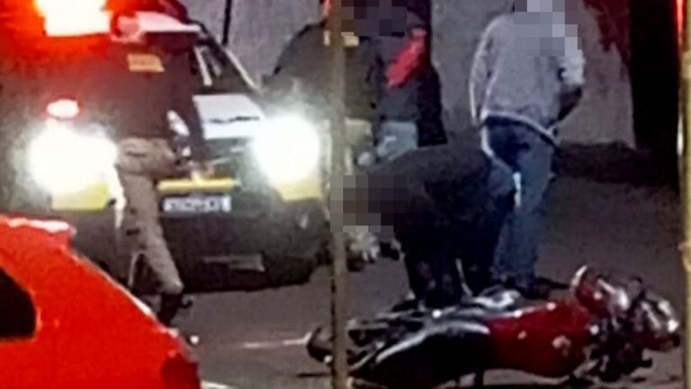 Na revista pessoal, nada de ilícito foi encontrado. No entanto, a motocicleta estava sem o filtro de ar, com a placa quebrada e com a lanterna traseira quebrada.