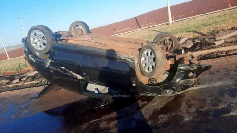 Um veículo Peugeot 206 capotou no início da manhã deste domingo (07) no km 614 da PR-239 entre Assis Chateaubriand e Bragantina.