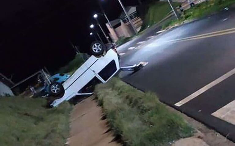 Motorista atropela dois, foge do local e capota carro