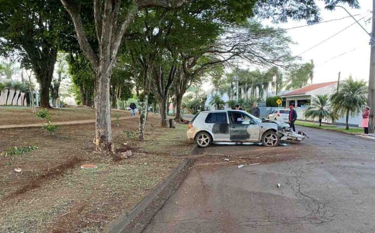Um motorista perdeu o controle da direção, bateu em uma árvore no canteiro central da Av. Souza Naves, em Ivaiporã e fugiu deixando o carro no local, segundo ocorrência da Polícia Militar. O acidente foi na tarde de sábado (17)