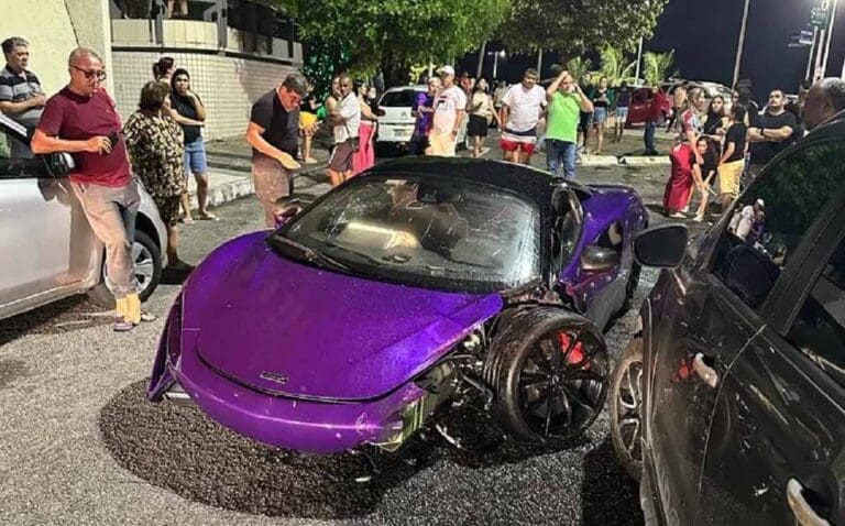 No vídeo que circula nas redes sociais, é possível ver que a McLaren teve uma das rodas danificada por conta do impacto do acidente.