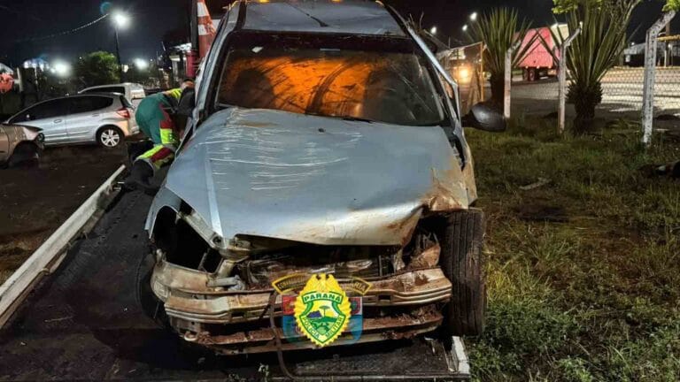 De acordo com o boletim, o Chevrolet Prisma com placas de Londrina bateu em um barranco à direita da pista e, em seguida, capotou. O carro parou sobre o canteiro central.