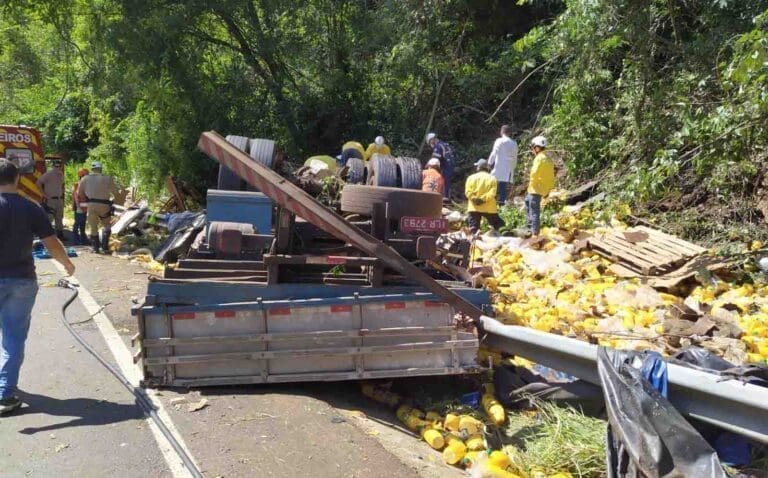Conforme a Polícia Militar Rodoviária Estadual (PMRv), a vítima dirigia um caminhão Ford/Cargo 2422, com placas de Barra Funda/RS e transportava chopp/litro.