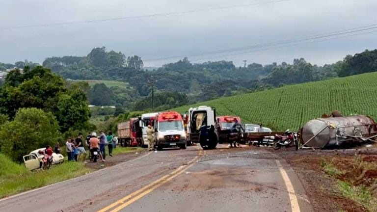O acidente ocorreu por volta das 9h30, quando o motorista perdeu o controle do veículo e saiu da pista. Parte do caminhão ficou sobre a rodovia e o tanque no acostamento.