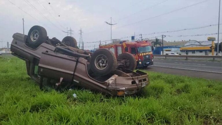 Após capotar, a caminhonete Ford F.100 saiu da pista e parou de ponta cabeça. Equipes do Corpo de Bombeiros foram acionadas para socorrer a vítima que estava fora do veículo quando os socorristas chegaram com um ferimento na cabeça.