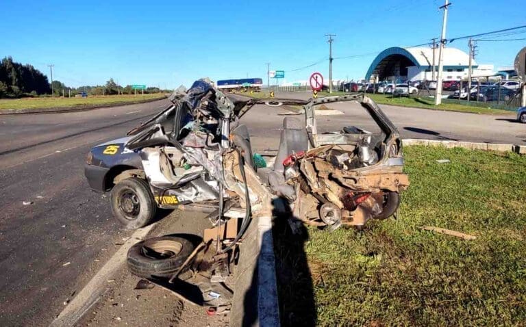 Na batida, o automóvel Gol foi arrastado por cerca de 20 metros. O caminhão só conseguiu parar a cerca de 80 a 100 metros do local do acidente.