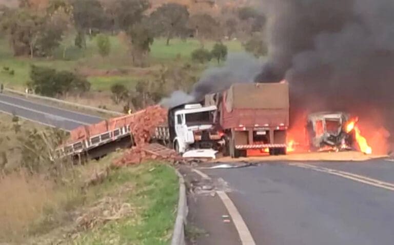 De acordo com informações da Polícia Militar, após a colisão os veículos pegaram fogo.