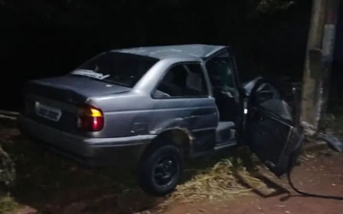 Um veículo ficou completamente destruído e o motorista, de 26 anos, ferido após pular do carro em movimento na noite desta segunda-feira (5), em Apucarana, no norte do Paraná. O acidente aconteceu na Rua Adélino Honório Correia, no Jardim Eldorado.
