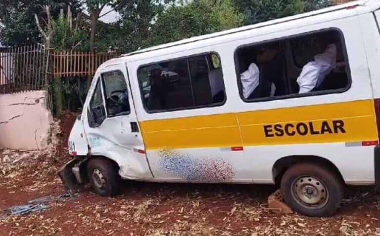 Oito crianças ficam feridas em acidente com van escolar no sudoeste do Paraná