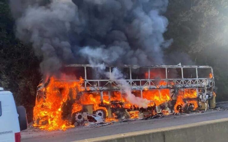 Um ônibus de turismo pegou fogo na BR-277, na altura do quilômetro 47, em Morretes, litoral do Paraná. A situação aconteceu na tarde desta segunda-feira (3). De acordo com a Polícia Rodoviária Federal (PRF) ninguém se feriu.