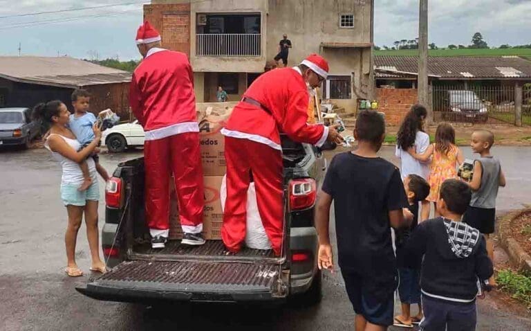 Papai Noel faz visitas e entrega presentes em comunidades de Ivaiporã