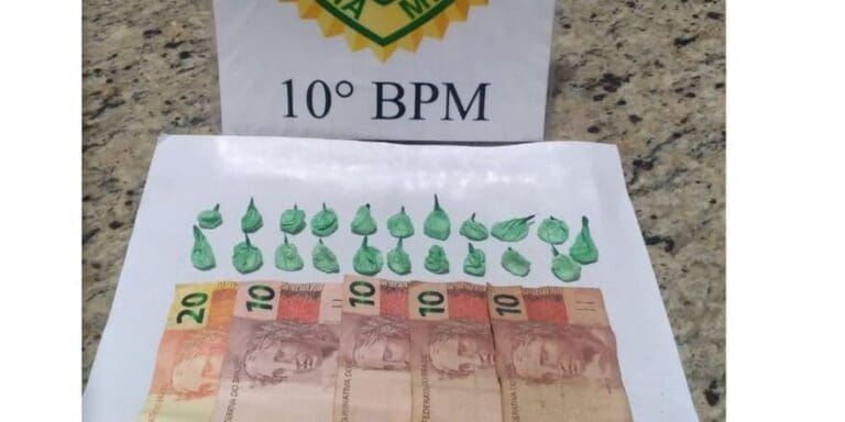 Durante buscas na casa dele, os polícias encontraram no quarto do rapaz, dentro de um tênis, 22 buchas de cocaína, além de R$60, que seria da venda de drogas.