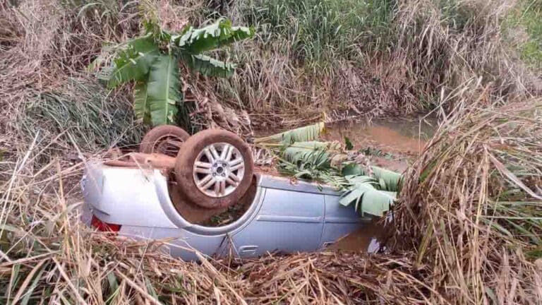 O motorista não obedeceu a ordem de parada e empreendeu fuga. Após diversos quilômetro entrou em uma estrada no Distrito de Dinizópolis, mas acabou capotando em meio a uma curva de nível em meio a uma plantação na área rural.