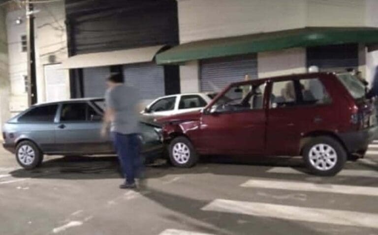 A batida envolveu um Fiat Uno Mile vermelho que era conduzido por uma mulher e um VW Gol verde, conduzido por um homem com sinais de embriaguez.