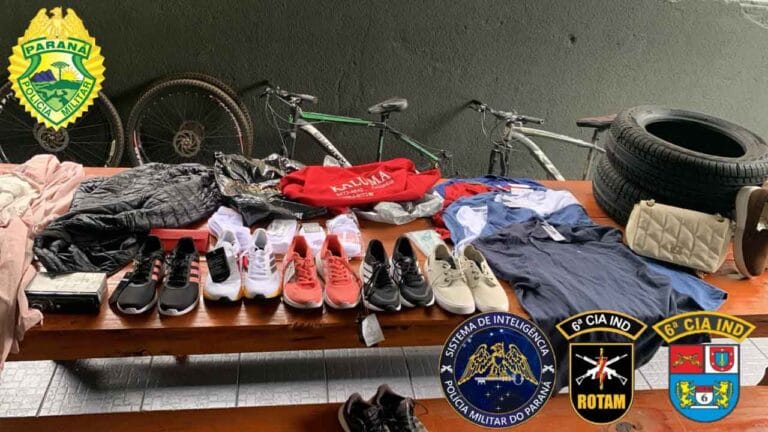 A ação ocorreu na Rua Juarez Cleves, no Centro, por volta das 13h30. Os policiais recuperaram roupas, calçados, pneus e duas bicicletas, avaliados em cerca de R$ 7.800.