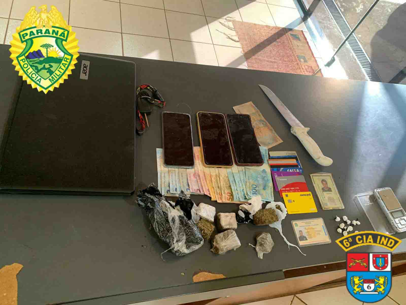 Os policiais também apreenderam R$ 700,00 em notas diversas, um celular da Samsung e dois REDMI 9, cartões bancários e um notebook. Os três suspeitos, a droga, dinheiro e os objetos apreendidos foram encaminhados para a Delegacia de Polícia Civil de Faxinal.